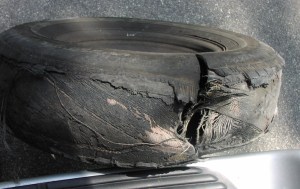 Then all of a sudden I heard a loud bang. I quickly pulled over to the far right shoulder of a nearly vacant long stretch of highway thirty miles away from my destination in the middle of nowhere. I took a quick walk around my car and noticed that my tire had completely blown out damaging the side panel of my door and leaving me momentarily stranded under the wrath of the hot sun.