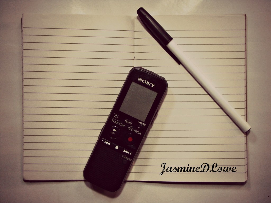 I paused for a moment trying to collect my thoughts and calm down in order to find out what she was saying. I suppose it was odd that a random person would carry a digital recorder and a note pad in her purse. “I don’t think you understand,” I said to her now trying to comprehend her thought process. “I have a digital tape recorder in my purse because I’m a Journalism student. I use it to tape interviews, but I always let the person know that I’m recording them.” I pointed to the “on” button. “Here, push that and then press play.”