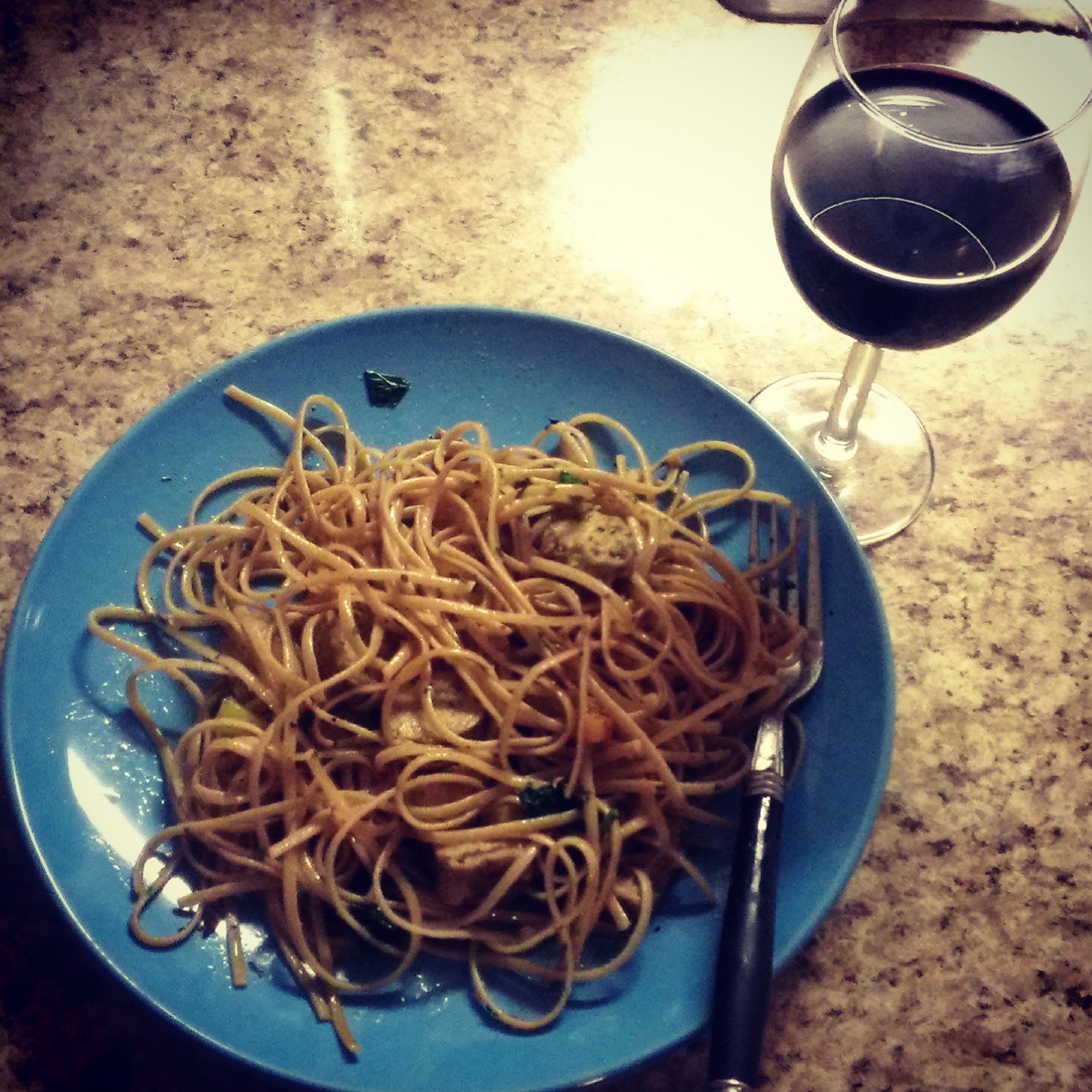 Directions: Bring a large pot of lightly salted water to a boil and add the pasta. I used whole wheat angel hair pasta, but any pasta will do. Cook the pasta for 8 to 10 minutes or until al dente and then drain and reserve for the other ingredients.