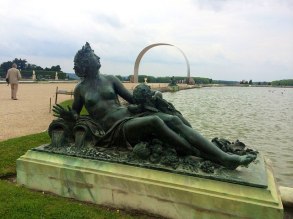 The gardens of Versailles around back, however, remained open. There we were transfixed by the massive French Garden design with well-manicured greenery and beautiful statues carefully arranged around the grounds. There were colorful flowers, large water fountains and a better view of the château’s façade around back.