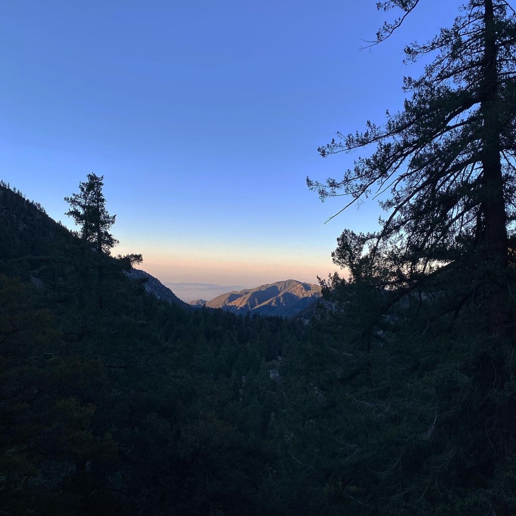 I planned to be on the mountain for about seven hours that day. I ended up taking four and half liters of water with me—three in the water bladder in my backpack, and one in a half liter in my large water cannister. There were a couple of PB&Js, dried fruits and nuts, and my Target-brand sunglasses. I packed everything, except for the water cannister, in the bag and shoved it into the car. It was a little cooler at the start of the trail in the mountain city of Mt. Baldy, so, I ended up putting my sweater on at the start of my hike. I matched the sun’s rise in elevation as I hugged the spiraling outskirt of the mountain and clung to my nearly frozen hands in the late October weather.